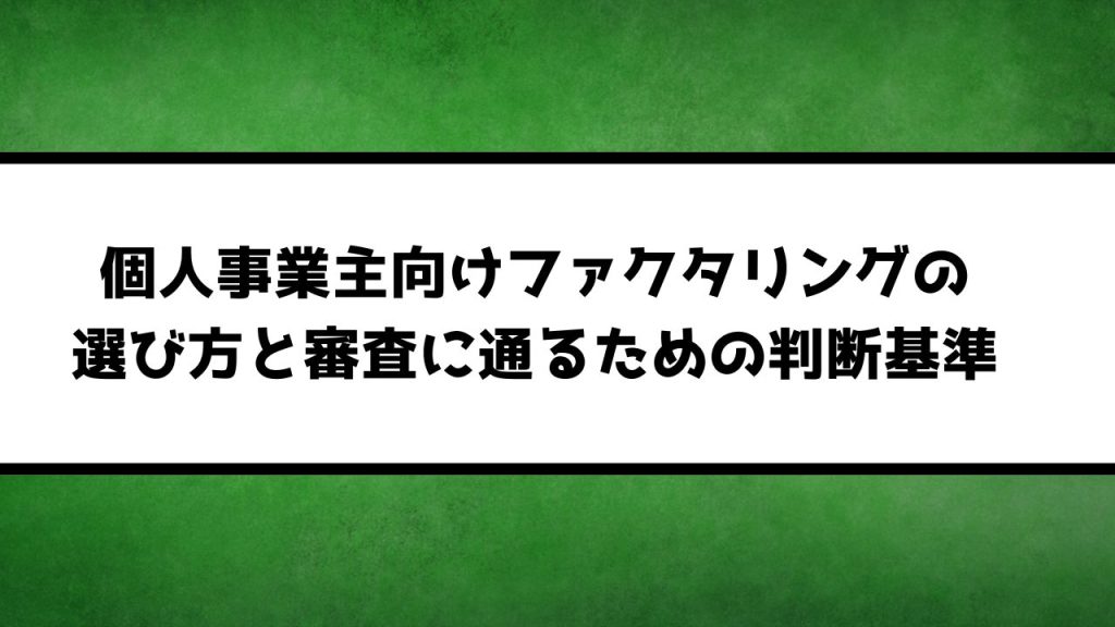 個人事業主向けファクタリングの選び方と審査に通るための判断基準