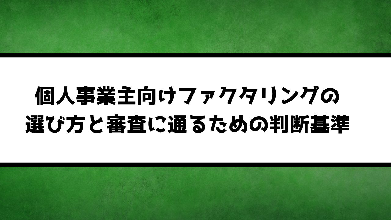 個人事業主がファクタリングを利用する際には、法人とは異なる審査基準や必要書類が設定されています。