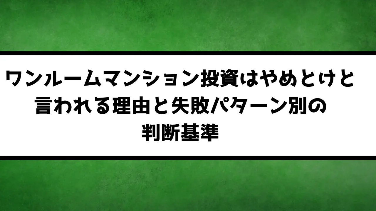 この記事では、ワンルームマンション投資が「やめとけ」と言われる7つの根拠と典型的な失敗事例を徹底解説し、冷静に判断するための客観的な基準を提示します。読み終えるころには、自分にとって向いているのか・避けるべきなのかを明確に判断できる状態になります。