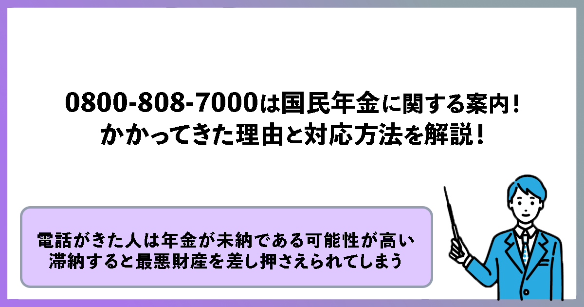 身に覚えがなかったとしても、0800-808-7000から電話がきた人は年金が未納である可能性が高いです。